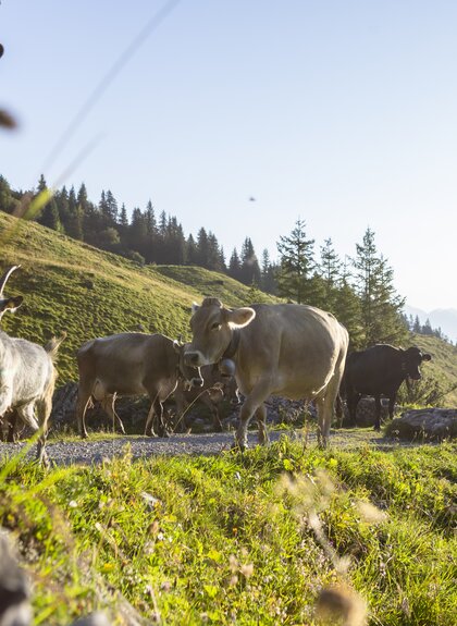 Das Montafoner Braunvieh – robust, anpassungsfähig und perfekt für das alpine Gelände. Mit seinem niedrigen Körperbau bewegt es sich mühelos in den Bergen und überzeugt durch Genügsamkeit. Diese vielseitige Rasse liefert sowohl erstklassige Milch für die Käseherstellung als auch hochwertiges Fleisch – ein wertvoller Bestandteil der Montafoner Landwirtschaft und Tradition.