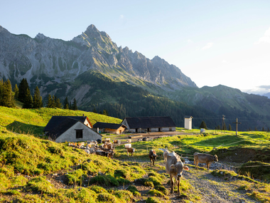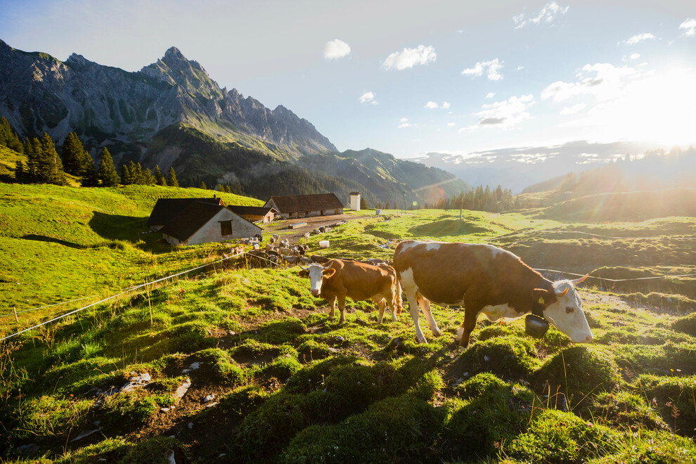 • Auf der Alpe gibt es Milchkühe, Rinder, Kälber, Alpschweine & Pferde