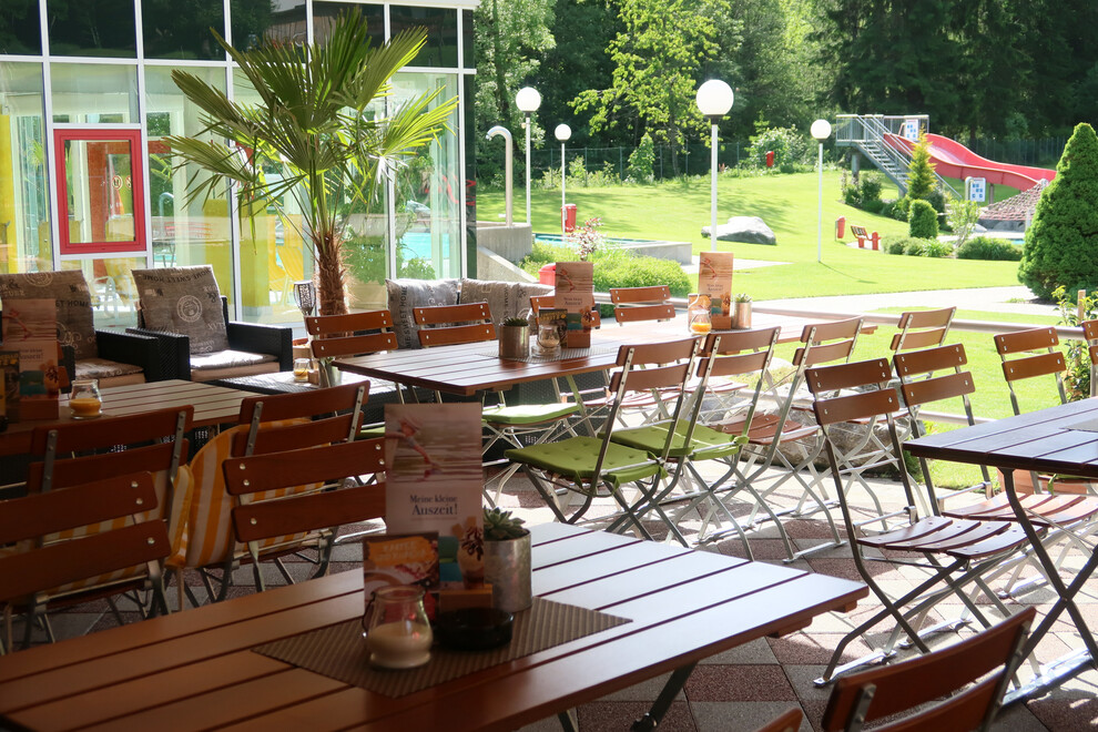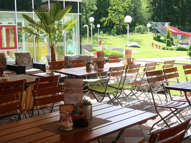 Österreichische Küche, Pizza, Burger, Salate, Eis, Shakes und Cocktails, SKY–Sport live, TV im Restaurant und auf der überdachten Terrasse