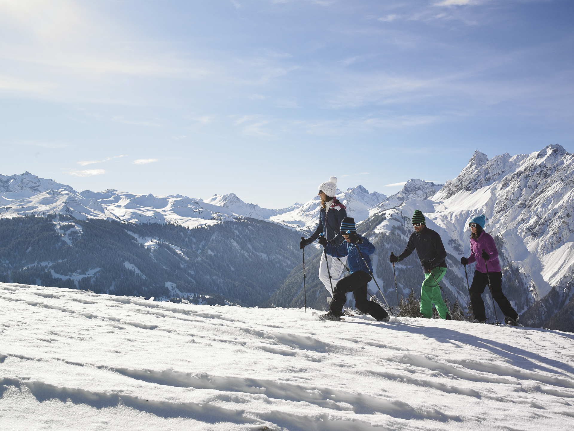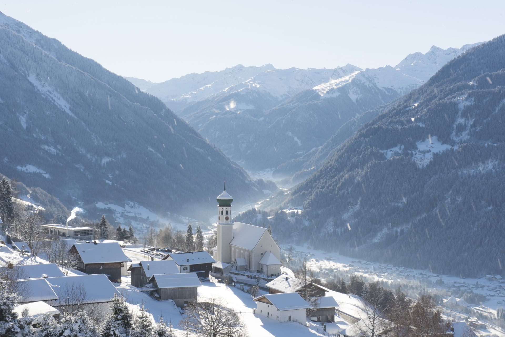 Die Schneeschuhwanderung startet beim Parkplatz, der gegenüberliegenden Barockkirche Bartholomäberg. Folge hier der Markierung querfeldein hoch zur Hennakopf Siedlung. Du überquerst den Roferweg und folgst wieder querfeldein der Route hoch bis zum historischen Bergwerk. Bis dahin überquerst du ca. 3x noch den Roferweg.