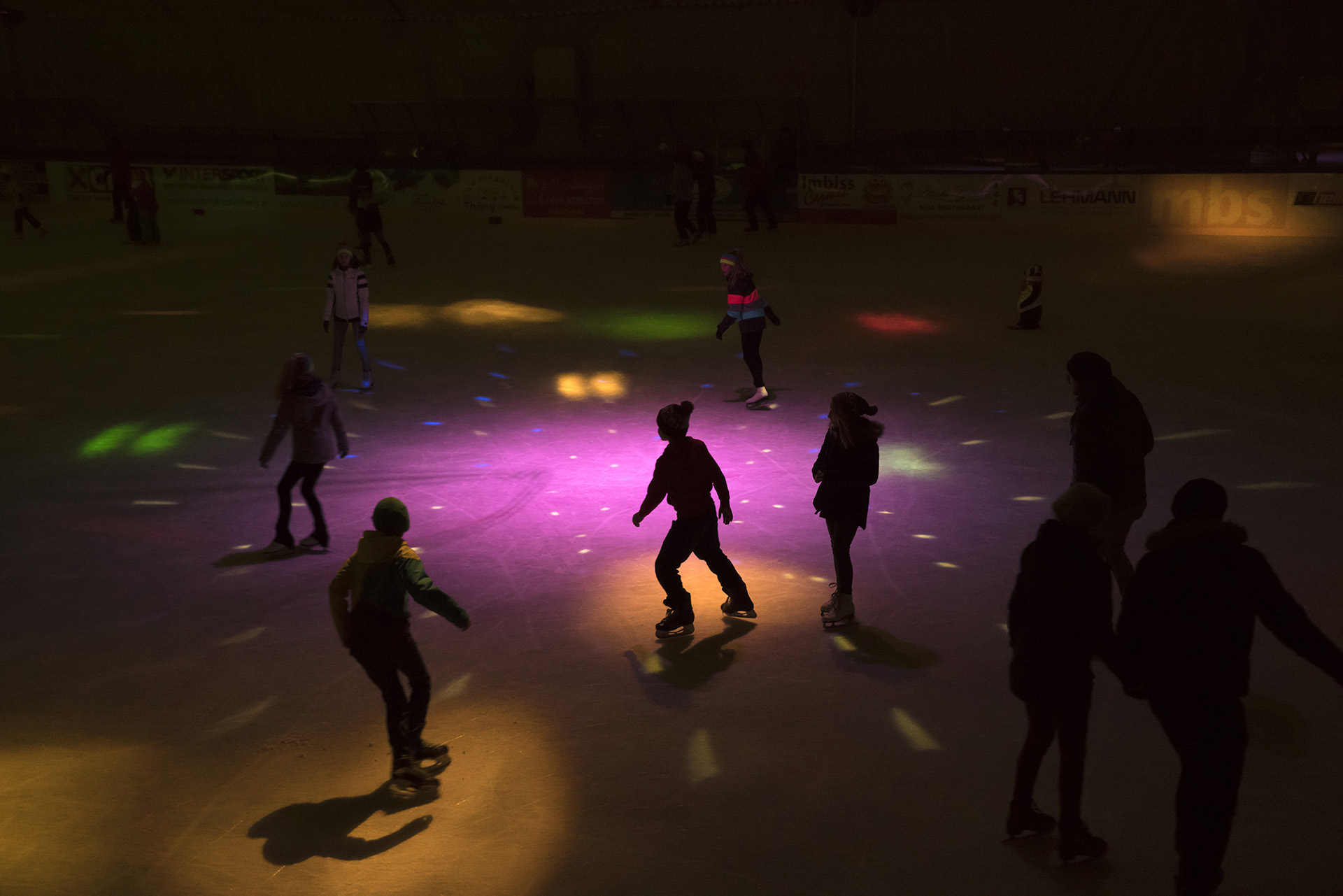 Coole Eisdisco mit den aktuellsten Hits gibt es auf der überdachten Kunsteisbahn. Mehr Infos auf aktivpark-montafon.at