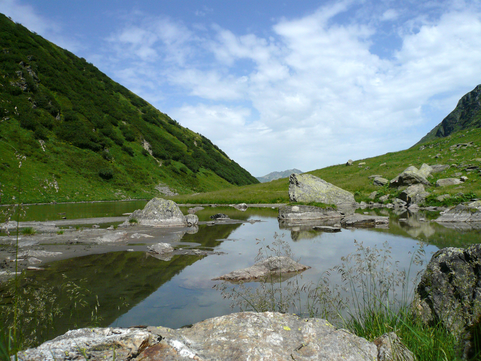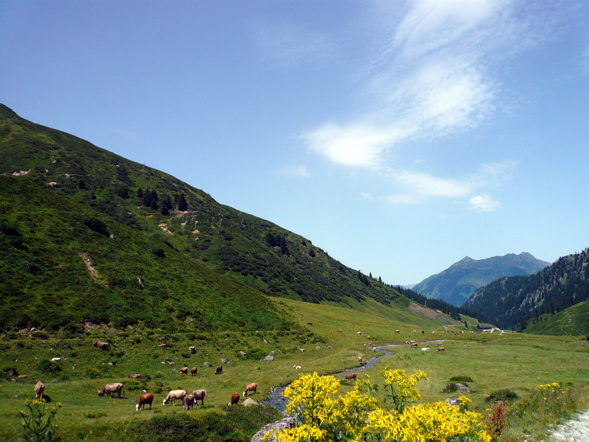 Den ersten Aufstieg machen wir mit der Versettla Bahn. Nun beginnt einer der schönsten Höhenwege des Montafons. Gleich bei der Bergstation geht es steil und steinig über einige Felsenstufen hinauf zur Versettla, dem ersten Aussichtspunkt. Der Anstiegsweg dorthin zieht in südliche Richtung und bietet Talblicke auf Gaschurn und Partenen und Weitblicke in die gegenüberliegende Verwallgruppe mit der auffallenden Berggestalt des Patteriols. Die Szenerie am Weg wechselt ständig. Je höher wir steigen, umso deutlicher sehen wir die Bergspitzen der Silvretta. Tief unten erkennt man den Garnerabach, der nahe der Tübinger Hütte seinen Ursprung hat und das ursprüngliche Garneratal durchfließt. Wir erreichen den aussichtsreichen breiten Grasboden Versettla und folgen nun dem Matschuner Gratweg. Zunächst über einen Höhenrücken nahezu eben und schließlich über einen letzten Steilaufschwung gelangt man zum Gipfelkreuz der Madrisella. Die grandiose Aussicht wiegt alle Anstiegsmühen auf. Besonders eindrucksvoll ist der Blick auf die unzähligen Zacken, Kuppen, Grate und Firnfelder der Silvretta. Am Ende des kleinen Abstiegs von der Madrisella stößt man wieder auf den Wanderweg, auf dem der Gipfel umgangen werden kann. Eingebetten in bunte Bergmatten liegen zahlreiche Seenaugen. Unvergesslich bleibt das Panorama auf dem folgenden schmalen Bergpfad. Auch Übergänge nach Gargellen und Garneratal sind von hier möglich. Wir steigen nach rechts, in das von der mächtigen Heimspitze überragten Novatal, ab. Mit etwas Glück lassen sich an den gegenüberliegenden Hängen der Matschunerköpfe und der Madrisella Gämsen beobachten. Steil und steinig geht es hinunter bis zum Seressee. Am jungen Bergbach entlang erreichen wir die Alpe Nova, bei der die Milch vor Ort zu "Sura Kees", einer Montafoner Käsespezialität, verarbeitet wird. Wir bleiben auf dem breiten Forstweg, ab und zu kann eine Abkürzung gewählt werden und wandern leicht talabwärts zur Bergstation Garfrescha Bahn. Von der Alpe Nova dauert der Abstieg ca. 30 min. nach Garfrescha. Der Sessellift bringt uns wieder ins Tal zurück. (Letzte Talfahrt: 17.15 Uhr)