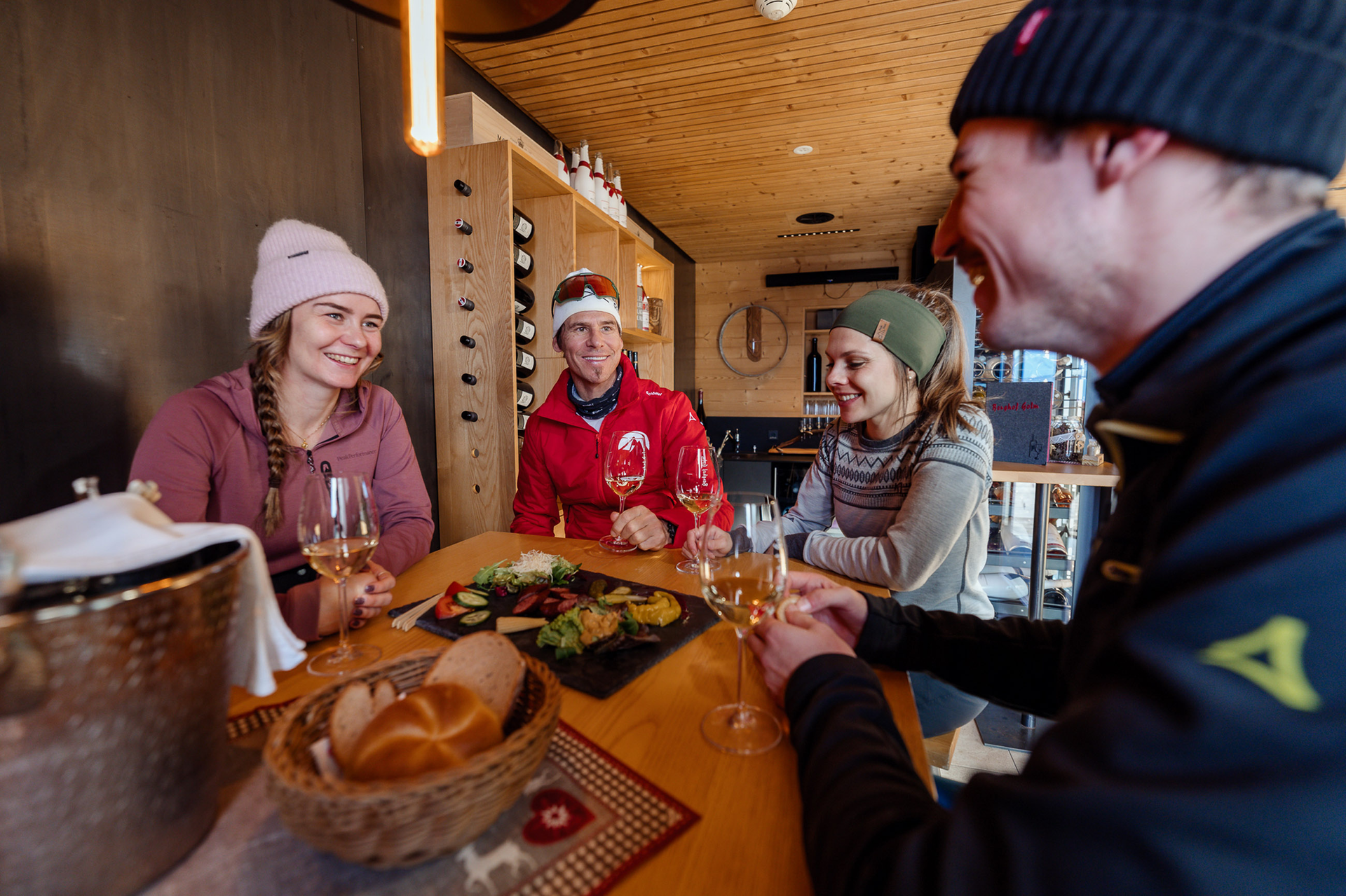 Nach einem aktiven Nachmittag auf der Piste erwartet euch ab 15:00 Uhr herzliche Gastfreundschaft und Genuss in einem unserer Gastronomiebetriebe am Berg. Bei einem leckeren Snack und einem Getränk habt ihr die Gelegenheit, euch mit eurem Skilehrer oder eurer Skilehrerin auszutauschen und die erlernten Fähigkeiten zu vertiefen.