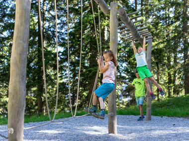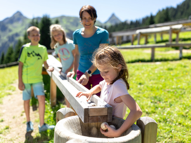 Bequem hinauf geht es mit der Golmerbahn zur Bergstation Grüneck. Dort startet Golmi's Forschungspfad - ein 2,4 km langer, abwärts verlaufender Wanderweg mit einem Aktivprogramm für Familien.