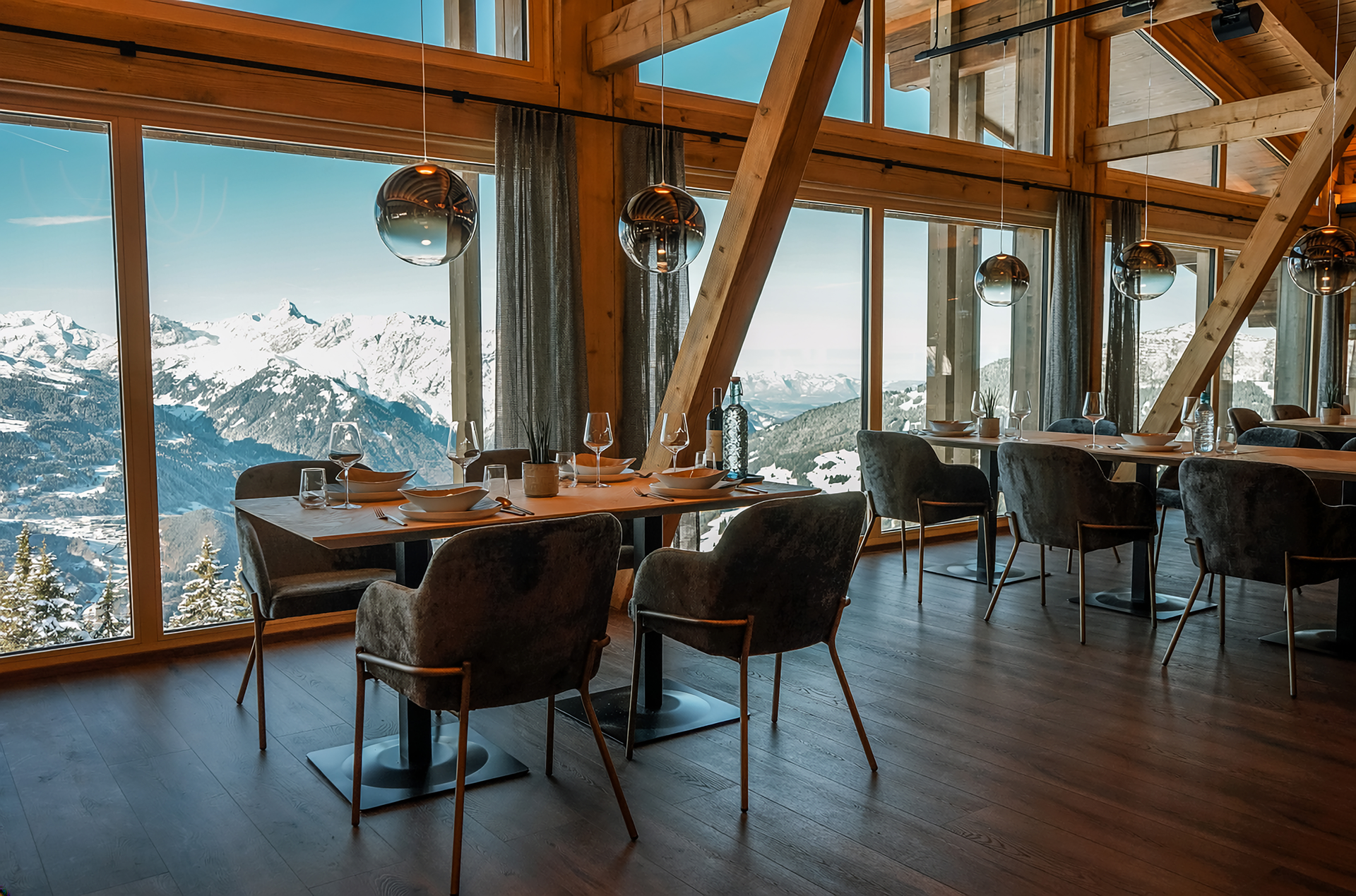 Im Obergeschoss des Kapellrestaurants sorgt die Weinbar & Lounge Hanglage auf 1.850 Metern Höhe für besondere Genussmomente. Ausgewählte Weine, zusammengestellt von Sommelière Lisa, treffen hier auf kreative Sharing Dishes, lässige Drinks und entspannte Sounds – perfekt, um gemeinsam zu genießen und den Tag mit Panorama und Geschmack ausklingen zu lassen.