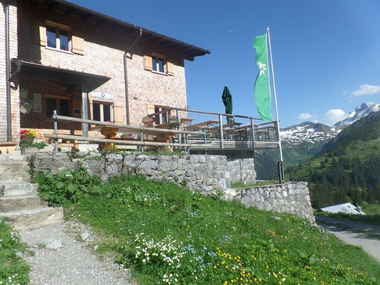 Am Fuße der majestätischen Zimba, dem Matterhorn des Montafon, thront auf 1.766 m die Heinrich Hueter Hütte.