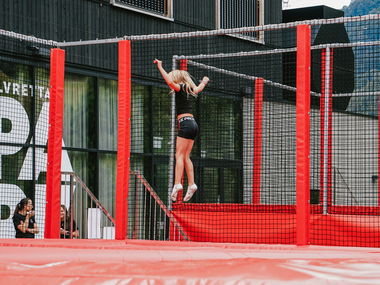 Auf Dich warten gleich ein Big Airbag, ein Hüpf-Areal mit sechs Trampolinen und Sicherheitsnetz, ein großes gesichertes Trampolinfeld und zwei Bungee Trampoline für besonders hohe Sprünge. Hier kannst Du Dich austoben, Tricks üben oder einfach nur Spaß haben. Der Eintritt wird vor Ort im Intersport Silvretta Park bezahlt.