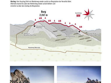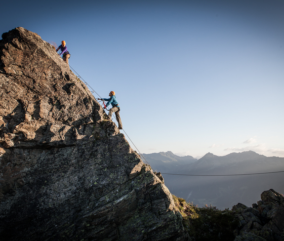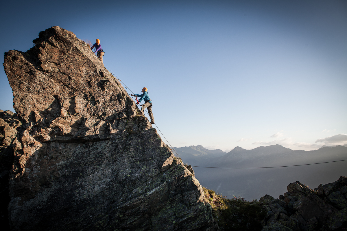 Abstieg: Vom Ausstieg führt ein Wanderweg wieder zurück zur Bergstation der Versettla Bahn. Alternativ kannst Du über den Klettersteig wieder zurück klettern und erreichst so über den Zustieg die Bergstation.