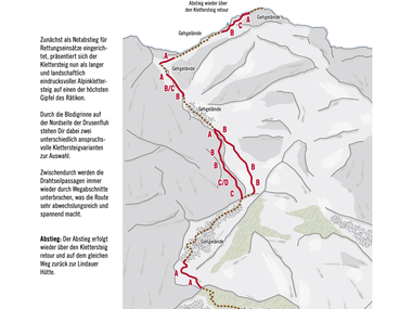 Abstieg: Der Abstieg erfolgt wieder über den Klettersteig retour und auf dem gleichen Weg zurück zu der Lindauer Hütte.