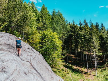 Begleitet von einem Montafoner Bergführer ist der leicht erreichbare Klettersteig am Staubecken Latschau ideal für Familien, die gemeinsam erste Erfahrungen am Klettersteig sammeln möchten. In den Schwierigkeitsgraden A bis C üben Kinder und Erwachsene den sicheren Umgang mit dem Klettersteigset, ein Ausstieg ist jederzeit möglich. Am Nachmittag zeigt sich der Fels hier besonders sonnenreich, begleitet vom Blick auf die nahe Zimba, das „Matterhorn des Montafon“. Der Programmpunkt lässt sich ideal mit einem Vormittag auf Ski am Bewegungsberg Golm verbinden.