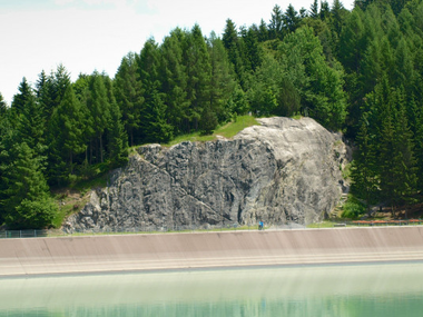 Der Kletterfels befindet sich neben dem Waldseilpark, auf der gegenüberliegenden Seite des Staubeckens bei der Mittelstation der Golmerbahn in Latschau.Von der Bushaltestelle Latschau Golmerbahn sind es etwa 10 Gehminuten: Du gehst am Ufer des Stausees entlang einmal um den See, bis Du auf der anderen Seite den Kletterfels erreichst. Nicht direkt im Waldseilpark, sondern daneben an der Felswand.