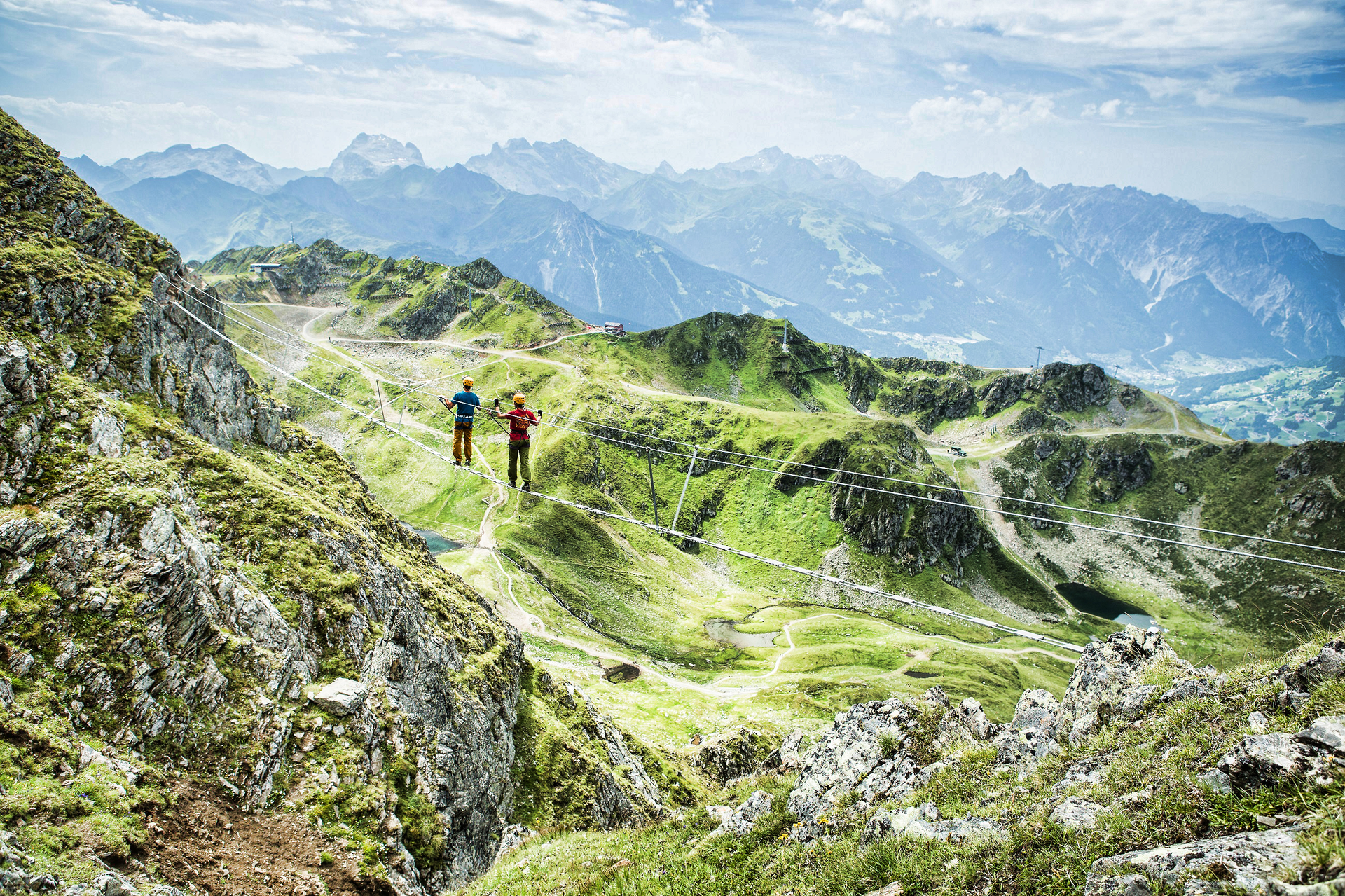Du bist auf der Suche nach echter Herausforderung? Dann mach dich mit der Sennigrat Bahn auf den Weg zur Klettersteig-Base beim Seetalhüsli. Beim Übungsklettersteig Kälbersee kannst du dich aufwärmen, bevor du in den Klettersteig Hochjoch einsteigst. Die Route verläuft über kleine Hängebrücken und Leitern, auch Rastplätze sind vorhanden. Der Klettersteig erfordert eine gute Kondition (Schwierigkeitsgrad C). Am Ziel – dem Gipfel des Hochjochs – angekommen, belohnt dich der Blick über die Gebirgszüge Rätikon, Silvretta und Verwall für die Anstrengungen.