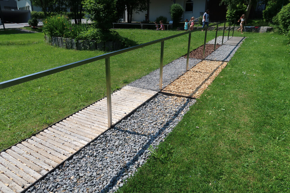 Die Kneippanlage im Gemeindepark Tschagguns wurde mit einem Barfußweg ergänzt. Dieser führt mit seinen 12 Stationen über verschiedenste Bodenbeschaffenheiten und wirkt auf die Füße wie eine Fußreflexzonenmassage. Lass Dich von dem Erlebnis, auf nackten Fußsohlen sich selbst und die Natur zu spüren, überraschen.
