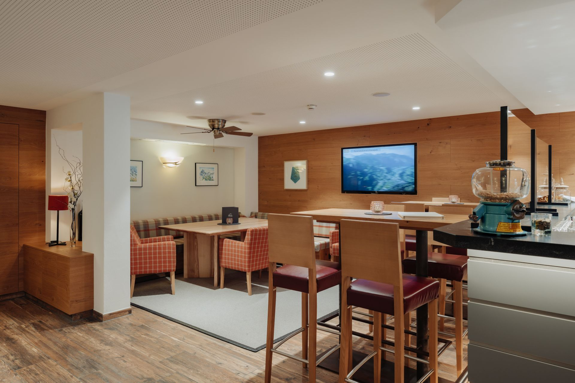 Genieße einen unterhaltsamen Abend mit Freunden und Familie mit Live-Musik und erfrischenden Getränken an der Bar im Hotel Zimba in Schruns.