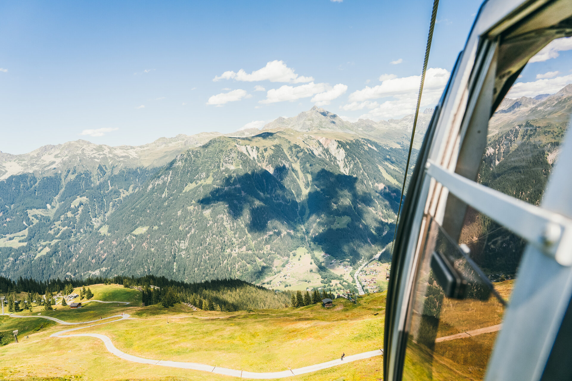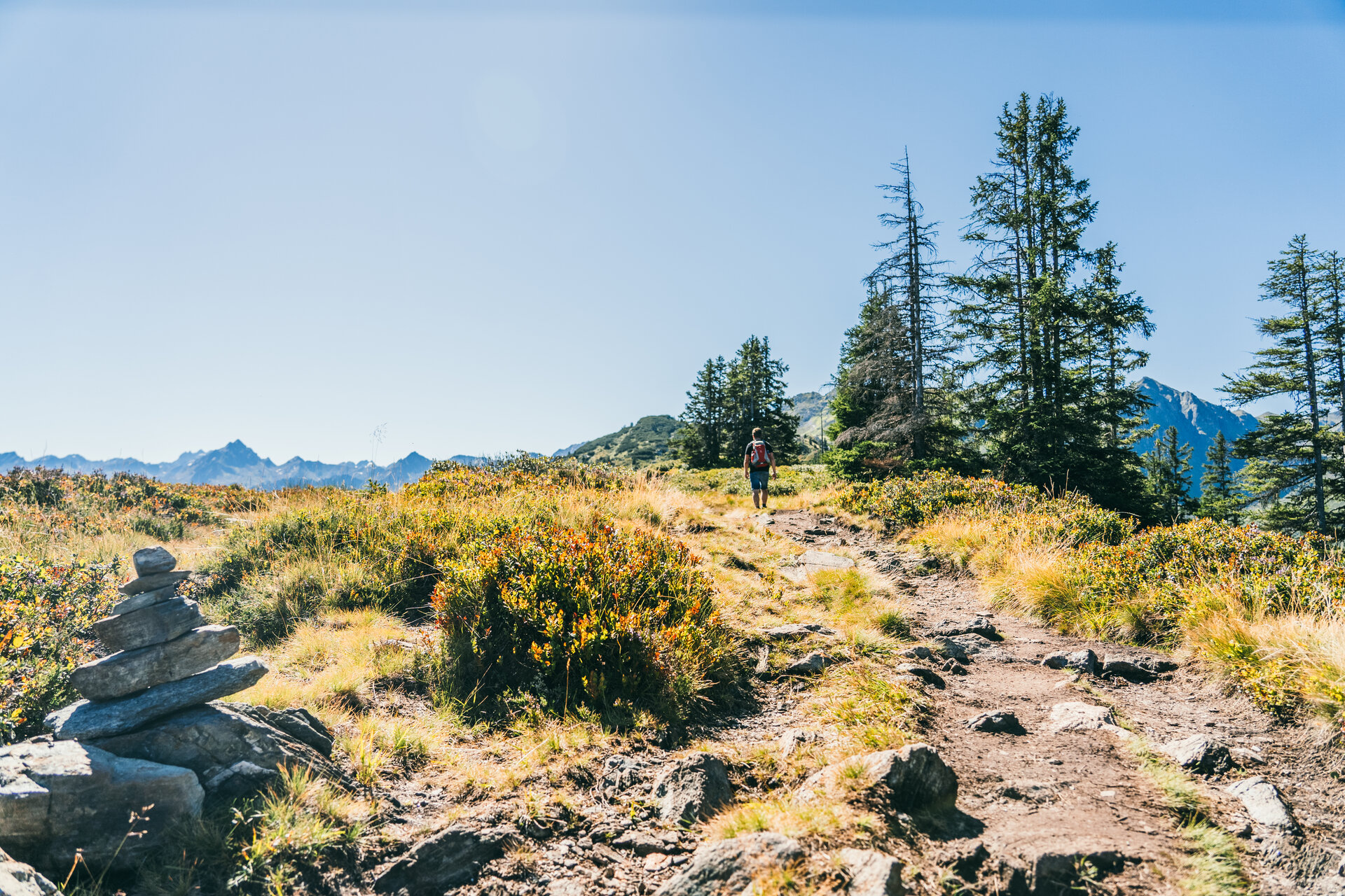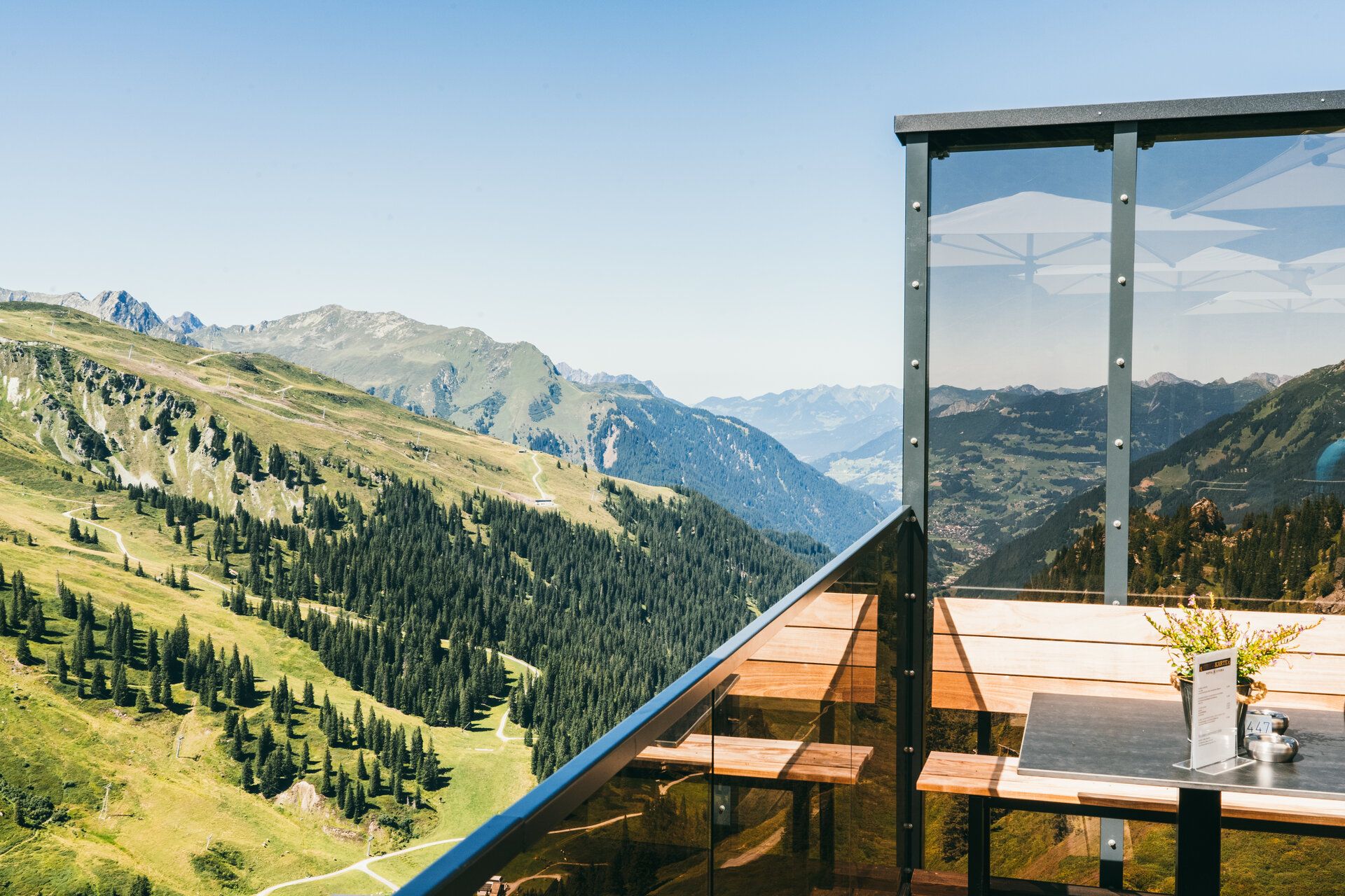 Mit der Garfrescha Bahn geht es für hinauf bis zur Bergstation. Auf dem Weg zur Alpe Nova entscheiden wir uns für einen kleinen Umweg über den Gantakopf, um eine schöne Aussicht ins Tal zu haben. Und das lohnt sich!