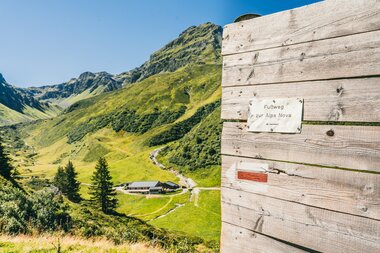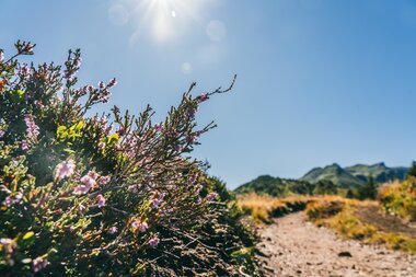 Schon nach ein paar Metern lassen wir die kleine Siedlung Garfrescha hinter uns und sind ganz in der Natur. Der Weg führt erstmal bergauf durch einen kleinen Wald, vorbei an Blaubeerfeldern. Da es schon ordentlich warm ist, kommen wir hier ganz schön ins Schwitzen. Aber die gut 300 Höhenmeter sind schnell geschafft und von nun an geht es relativ flach weiter. Gut einen Kilometer vor dem Gipfel des Gantakopfes lässt man auch den Wald hinter sich und man hat schon eine super Aussicht auf die umliegenden Berge und Täler. Hin und wieder können wir schon unser Ziel, die Alpe Nova, unten im Tal sehen. Vom Gipfel des Gantakopfes aus hat man dann eine traumhafte Aussicht ins Montafon! Wir machen hier erstmal eine ausgiebige Pause und genießen die Aussicht.