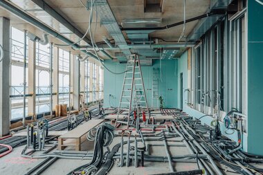 In den Technikräumen werden derzeit die Geräte angeschlossen und verkabelt. Ein essenzieller Schritt, um die Infrastruktur des Gebäudes mit Leben zu füllen.
