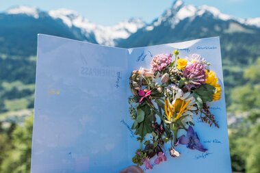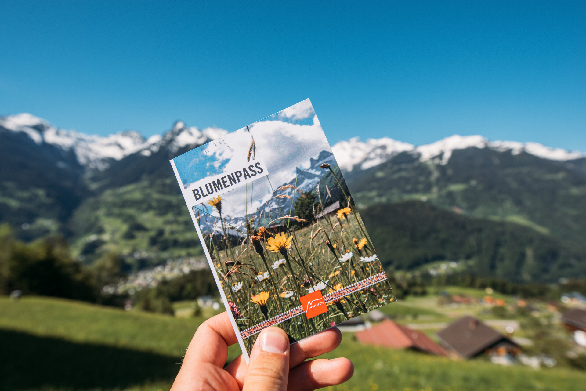Wir steigen an der Barockkirche Bartholomäberg aus. Es ist sommerlich warm, aber die Berge rundherum sind noch schneebedeckt. Harry erklärt uns, wie die umliegenden Berge heißen und welche Täler besonders schön sind. Der Blick auf die markanten Gipfel der drei Türme ist traumhaft. Wir genießen noch ein wenig die Aussicht und dann geht es auch schon los mit unserer Wanderung. Wir bleiben immer wieder stehen, bestaunen Bienen, Grillen und andere Insekten. Wir bekommen einen tieffliegenden Roten Milan und einen Buntspecht zu sehen. Am Anfang hätten wir nie gedacht, dass eine Wanderung durch Blumenwiesen so interessant werden könnte. Harry kann uns zu fast allen Pflanzen etwas erzählen. Wir schnuppern an den verschiedensten Blumen und manche Pflanzen dürfen wir sogar probieren – daher wissen wir jetzt auch, warum der Sauerampfer Sauerampfer heißt.