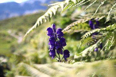 Der blaue Eisenhut ist eine der giftigsten Pflanzen Europas und sollte gemieden werden. Die dunkel-violett strahlende Pflanze findet man häufig auf nährstoffreichen Almwiesen auf einer Höhe um die 2.300 Metern. Die stark giftige Pflanze kann bis zu eineinhalb Meter hoch werden und trägt zahlreiche dunkle Blüten. Schon Berührungen mit dieser hochgiftigen Pflanze sollten vermieden werden!