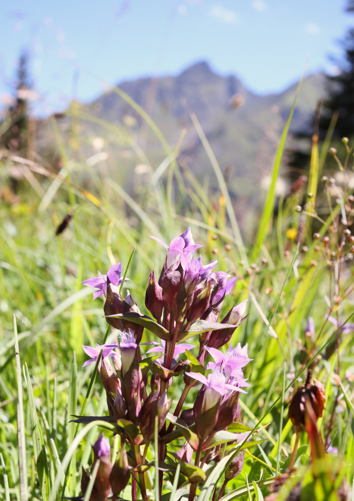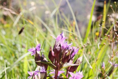 In den Alpen wachsen rund 35 verschiedene Enzianarten, darunter auch der Feld-Enzian, welcher in seiner hell-rot-violetten Pracht blüht. Der Feld-Enzian steht wie alle anderen Enziangewächse unter strengem Schutz. Vorzufinden ist er auf nährstoffarmen und steinigen Bergwiesen bis 2.300 Metern Seehöhe und blüht von Juli bis Oktober. Der Feld-Enzian wird bis zu 30 cm hoch.