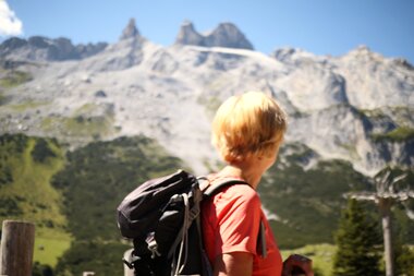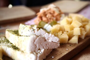 Mit bereits unzähligen Eindrücken im Gepäck, erwartete uns auf halber Strecke eine schmackhafte Käseplatte auf der Oberen Latschätzalpe. Die Ruhe hier oben auf 1.730 Metern Seehöhe nutzten wir, um den besonderen Ausblick auf die umliegende Bergwelt des Rätikon in vollen Zügen zu genießen.