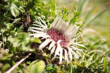 Die Silberdistel ist eine im Alpenraum weit verbreitete Pflanzenart, welche meist in Höhen von 2.800 Metern vorkommt. Sie zählt zu den gefährdetsten Pflanzenarten und ist besonders an sonnigen Waldrändern, warmen und nährstoffarmen Steinrasen anzutreffen ist. Bei schlechtem Wetter schließt sich der Korbblütler zusammen, weshalb sie auch Wetterrose genannt wird.