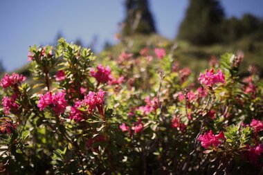 Wer kennt sie nicht - die strahlend leuchtende Alpenrose, welche jedes Landschaftsbild zu einem noch besondereren Anblick macht. Sie wächst bis auf 2.500 Metern Seehöhe und blüht von Mai bis Juli/August. Zahlreiche Wanderwege im Montafon führen an den rosarot-übersäten Hängen vorbei. Blütezeit der Alpenrose ist von Juni bis August. Unterschied gibt es zwischen der „bewimperten“ und der „rostblättrigen“ Alpenrose, welche sich in ihrem unterschiedlichen Lebensraum charakterisieren.