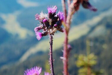 Wer in der Montafoner Bergwelt unterwegs ist, kommt mit einer hohen Wahrscheinlichkeit an der Klettendistel vorbei. Sie wächst auf kalkhaltigen, nährstoffreichen Böden bis 2.500 Meter und ist im gesamten Alpenraum vertreten. Besonders Schmetterlinge und Bienen lieben die herrlich-blühende Klettendistel. Die Blütezeit dieser stark vertretenen Klettendistel ist von Mitte Juni bis August.