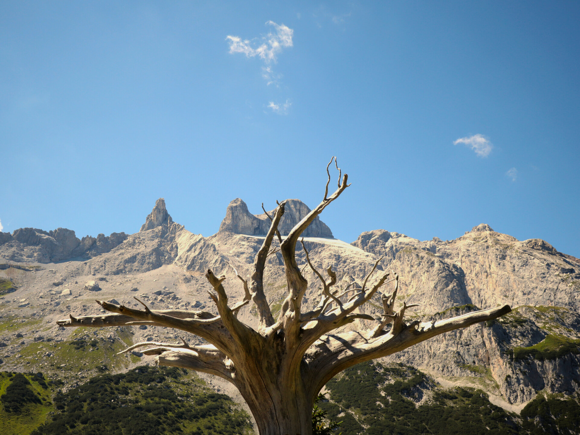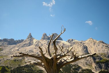 Auf der aussichtsreichen Wanderung vom Erlebnisberg Golm zur Lindauer Hütte stechen einem neben den markanten Drei Türmen, zunächst die umgedrehten Fichten ins Auge. Die Skulpturen des Montafoner Künstlers Roland Haas fügen sich sanft in die Natur ein und wirken beinahe so, als wären sie immer schon da gewesen. Entlang der Gauertaler AlpkulTour laden 13 verschiedene Stationen mit künsterlischen Elementen dazu ein, innezuhalten und nachzudenken. Kombiniert mit dem Genuss regionaler Produkte der Alpe Latschätz und einem wissenswerten Einblick in die farbenprächtige Alpenflora, wird die geführte Wanderung zu einem unvergesslichen Erlebnis.