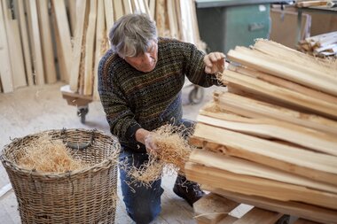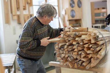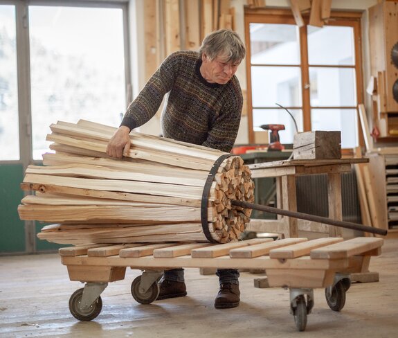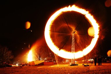 Mit einem Durchmesser von 17 Metern ist das Fackelrad in Tschagguns das größte im ganzen Tal. „Alles in Handarbeit angefertigt“, erzählt Erich mit einem gewissen Stolz. „Seit ich denken kann, gibt es bei uns Fackelräder, deswegen wollte ich vor 20 Jahren ein ganz besonderes Rad bauen.“ Viele Jahre lang war das Fackelrad am Fuße der Tilisunahütte immer zur Sommersonnenwende in Betrieb. Jetzt hat es seine Heimat im Tal gefunden.