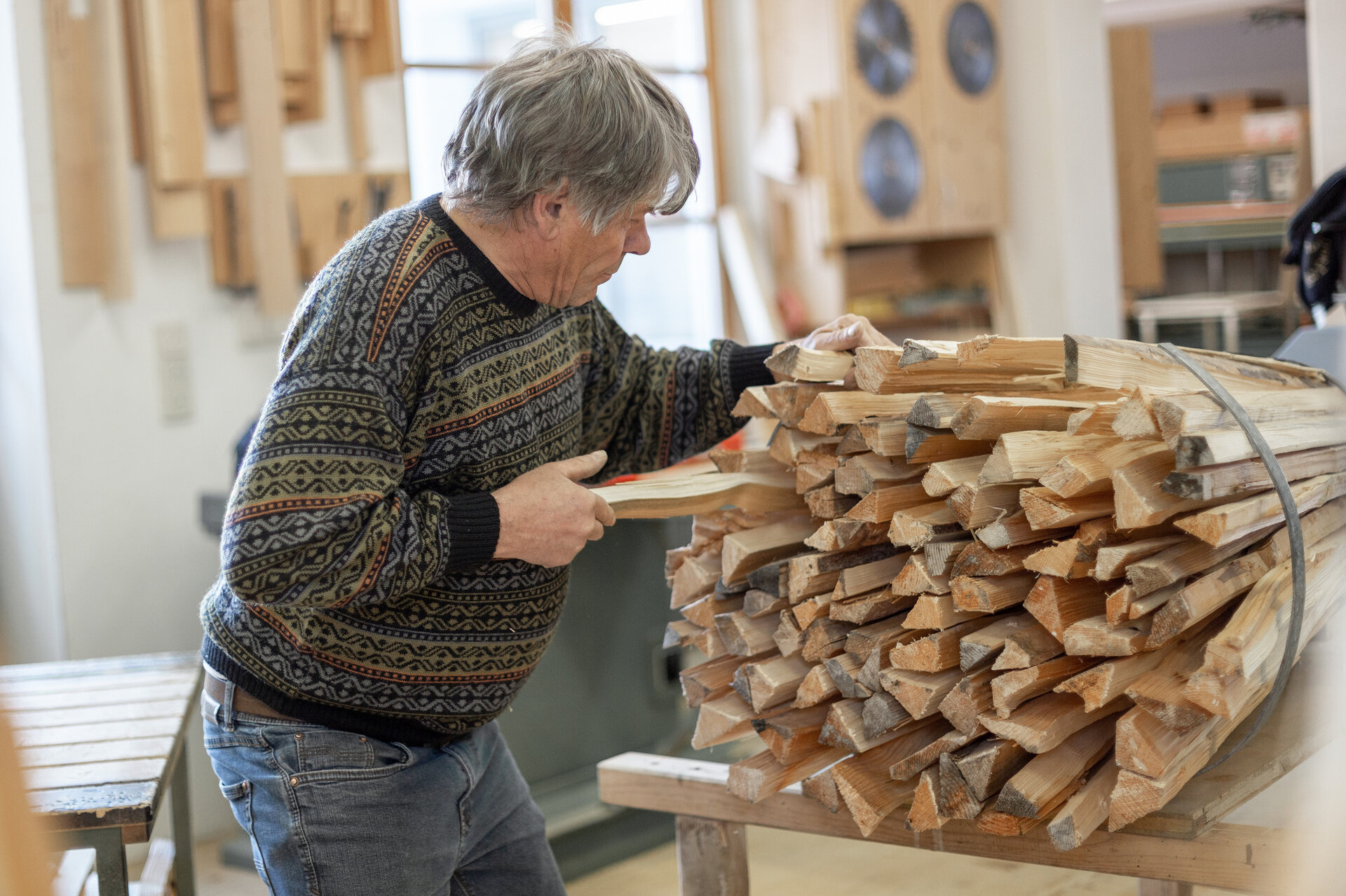 Insgesamt sechs Fackeln sind am Rad montiert. Jede Fackel hat eine Länge von mehr als einen Meter und einen Durchmesser von ca. 70 Zentimetern. Gemeinsam mit zwei Kollegen verbaut Erich unzählige Holzscheiter und Keile sowie Holzwolle. Rund 25 Stunden Arbeit stecken in der Anfertigung der Fackeln. Am Funkensonntag wird das Fackelrad gemeinsam mit dem Funken angezündet. Für rund zwei Stunden erhellen die Riesenfackeln schließlich den Nachthimmel von Tschagguns - ganz zur Freude der Funkenbesucher und Fotografen.