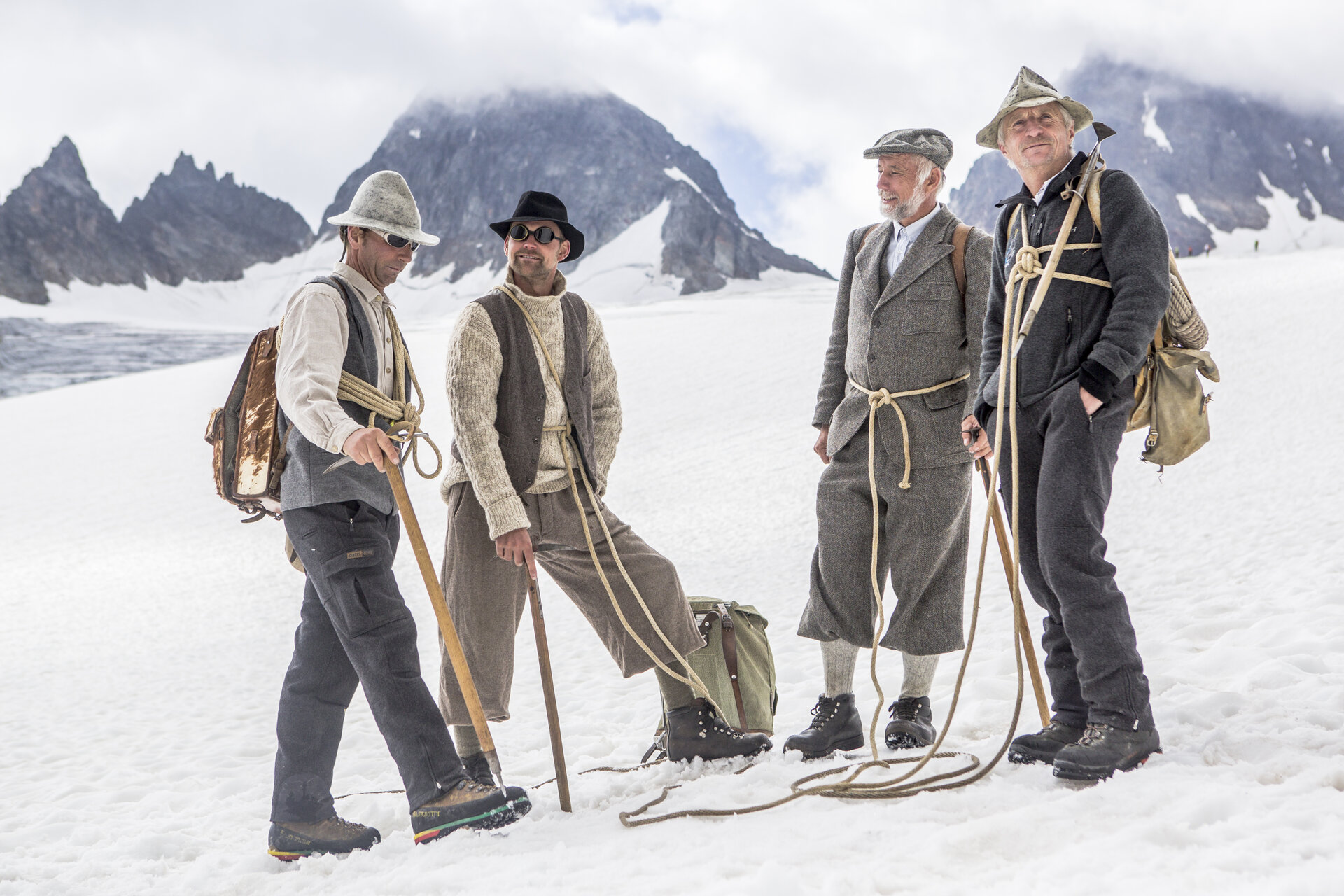 Frühmorgens brechen die bergnärrischen Kaufleute Johann Jakob Weilenmann aus St. Gallen und Joseph Anton Specht aus Wien von der Alpe Großvermunt auf der Bielerhöhe, wo heute der Silvrettasee liegt, auf. Zwei Tiroler Führer, Gamsjäger Franz Pöll aus Mathon und Jakob Pfitscher aus dem Passeiertal, begleiten sie.