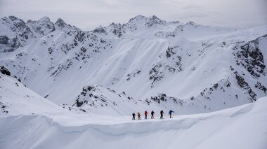 Wir steigen in die Loipe und die ersten Versuche gehen besser als gedacht. Von der Bergstation der Kristbergbahn führt die 9,3 Kilometer lange Panoramaloipe in Richtung Silbertal bis zum Wildried und wieder zurück zur Kristbergbahn. Insgesamt hat die Loipe ca. 180 Höhenmeter – also perfekt auch für Anfänger. Vor allem, weil es weder nennenswerte steile Anstiege noch Abfahrten gibt.