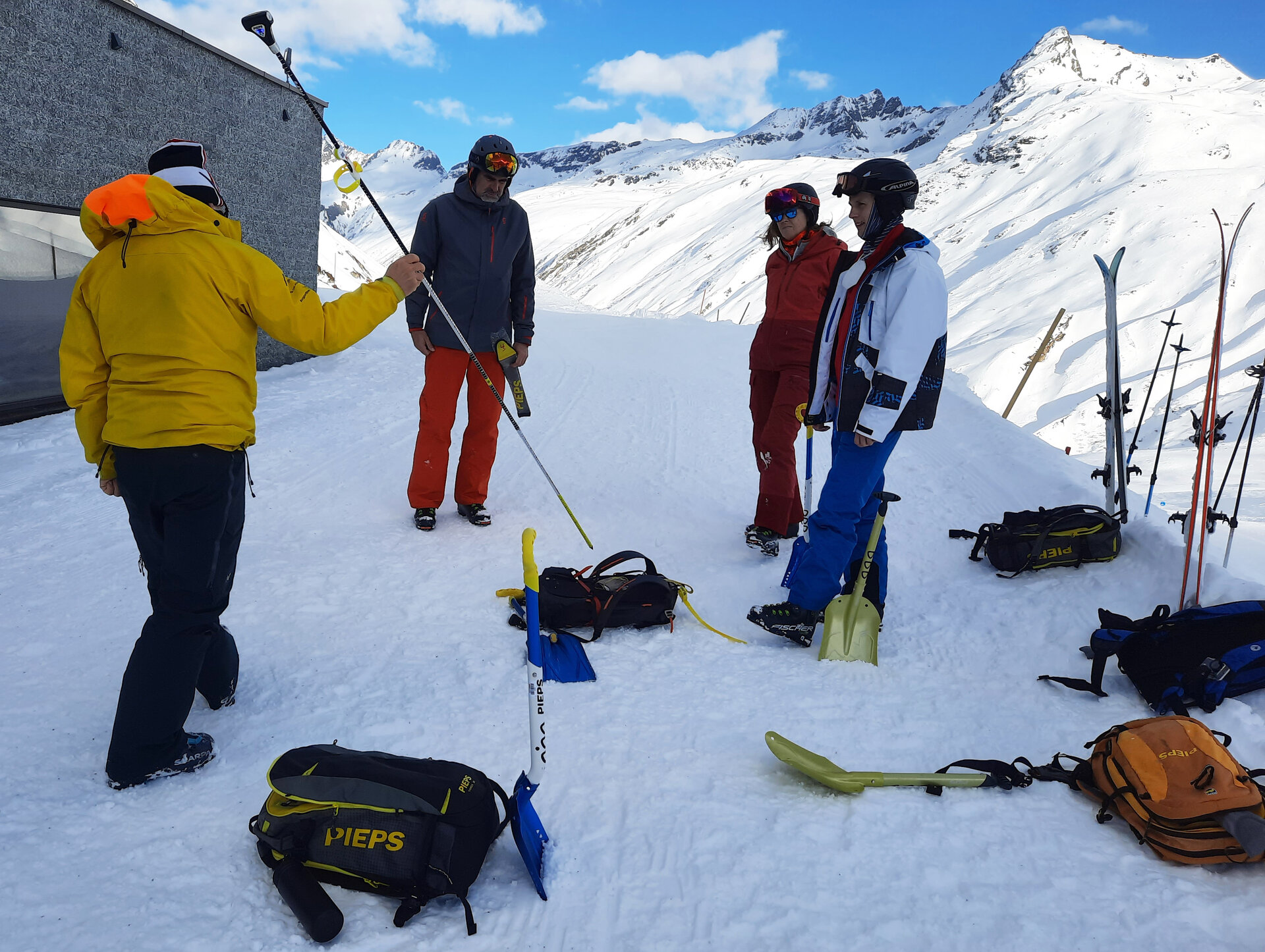 Spannung bis zum letzten Moment: Auch wenn es uns verleitete, am Ankerlift nochmal ein paar Spuren im Tiefschnee zu hinterlassen und nochmals hoch zu liften, werden wir aus den Träumen gerissen. Jonny ist perfekt organisiert und hat die Uhr im Blick. Er zeigt uns noch die Nutzung der Sonde und Schaufel und versteckt sein LVS-Gerät. Buddeln, buddeln – da ist er wieder, der Hund.