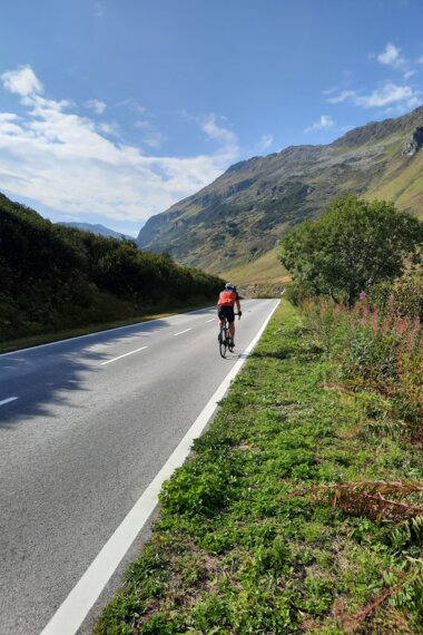 Was mir sofort aufgefallen ist: Das Radwegnetz ist im Montafon sehr gut ausgebaut und beschildert. Man kann sogar richtig Strecke machen. Egal, ob mit Mountainbike, E-Bike, Gravelbike oder Rennrad: Die asphaltierte Route zwischen Bludenz und Partenen beispielsweise führt an der Ill entlang, immer weit entfernt von Verkehrsstraßen. Vorbei an weiten Wiesen und Montafoner Gemeinden. So lassen sich viele Ausflugsziele erreichen. Selbst der Schweiß hält sich noch in Grenzen: Zwischen der 22 Kilometer langen Gesamtstrecke zwischen Bludenz und Partenen müssen nur 400 Höhenmeter absolviert werden. Zurück wundert man sich dann über die rasant drehenden Kurbeln.