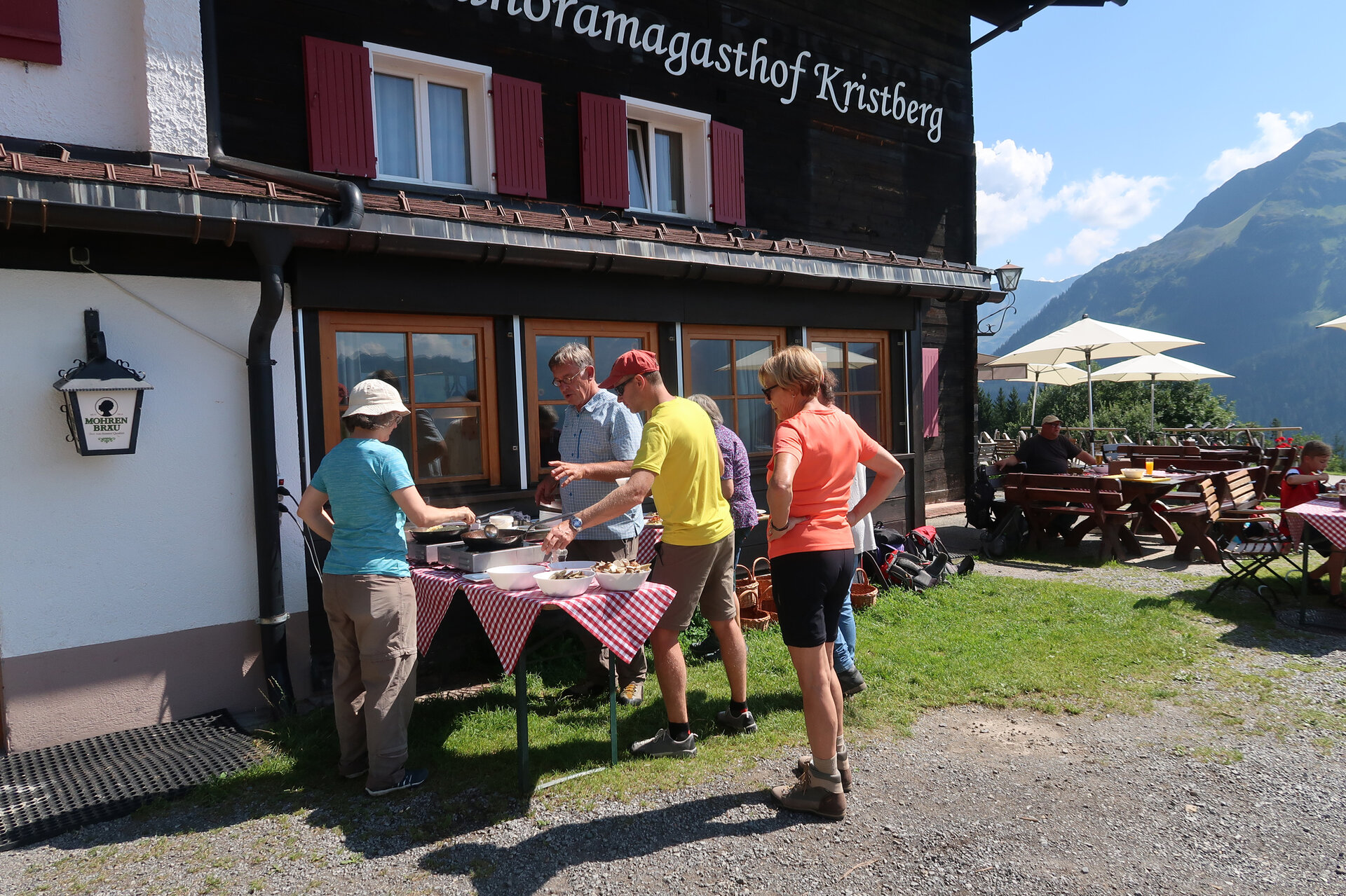 Zum Abschluss bereitete uns die Küche des Panoramagasthofs Kristberg einen leckeren Kaiserschmarren zu, natürlich mit unseren gesammelten Beeren. Es war wirklich schön, nach der Wanderung selbst beim Kochen mithelfen zu dürfen und auch, dass alle zusammengeholfen haben. Gemeinsam ging es für alle Teilnehmer wieder ins Tal, wo sich Harry von uns verabschiedete.