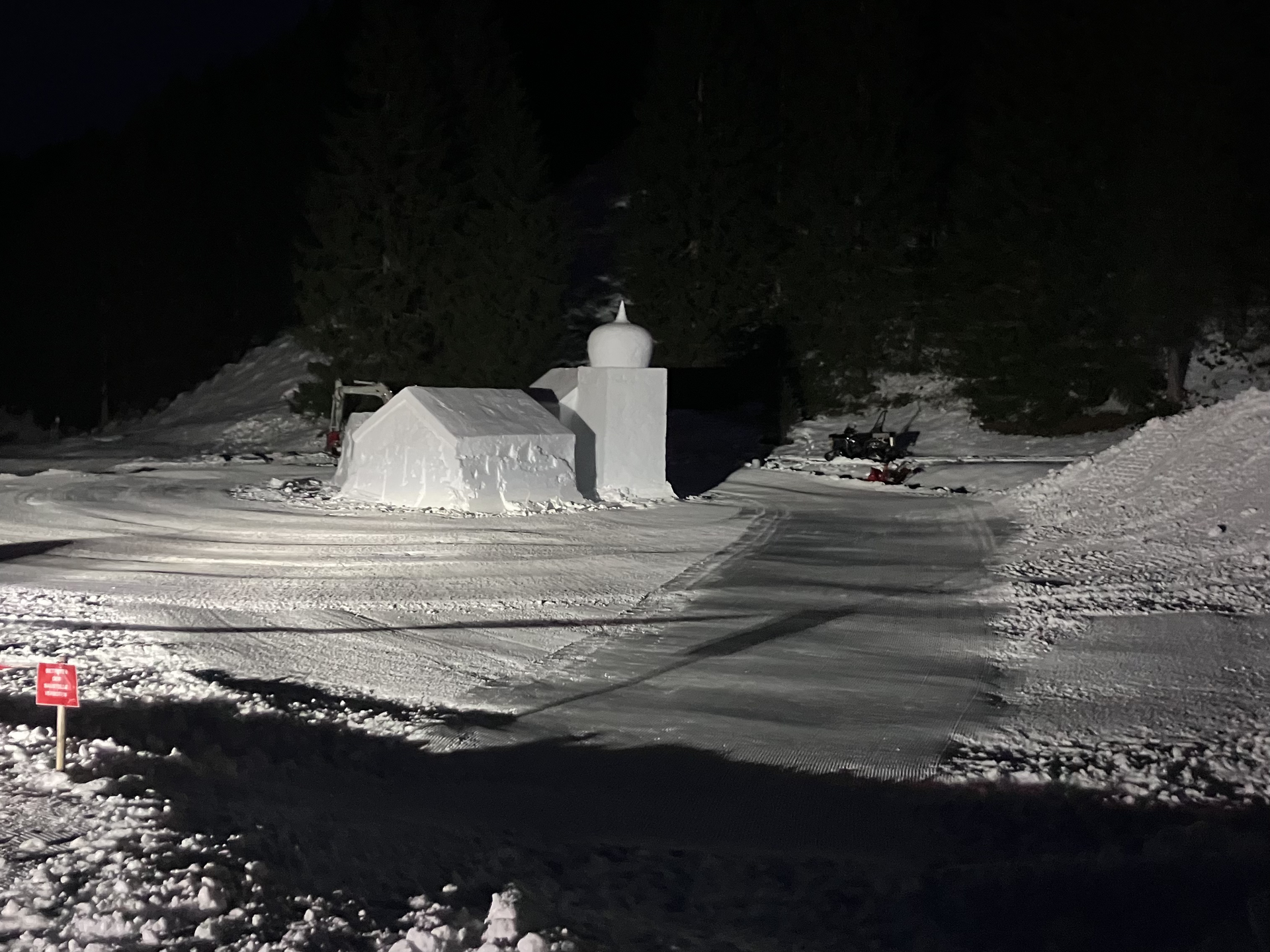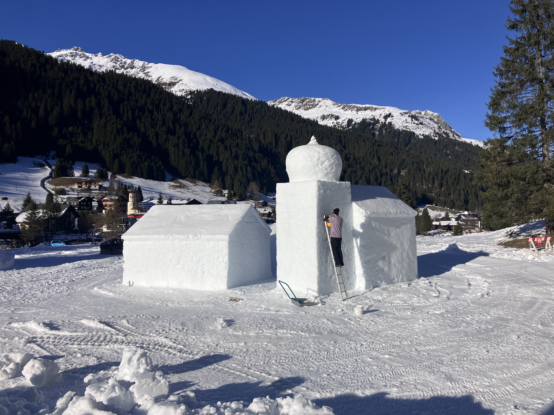 Mit viel handwerklichem Geschick, Kreativität und gemeinschaftlichem Einsatz ist bei der Talstation der Gargellner Bergbahnen ein kleines Winterdorf aus Schnee entstanden. Die temporäre Installation umfasst mehrere Schneehäuser mit Kirche und eine eigens errichtete Bühne aus Schnee. Hier auf diesem Platz wird Schnee zum lebendigen Raum für Fantasie und Spiel. Während den Erwachsenen die vielen Facetten von Schnee zugänglich gemacht werden, können Kinder klettern, rutschen und das Winterdorf spielerisch entdecken – ein Erlebnisraum, der besonders den kleinen BesucherInnen große Freude bereitet und das Winterdorf zu einem Ort für die ganze Familie macht. Was zunächst als Idee begann – dem Schnee als elementarem Bestandteil des alpinen Lebens neuen Raum zu geben – wurde in den vergangenen Wochen zur Realität. Aus ca. tausend Kubikmetern verdichtetem Schnee formten Bildhauer gemeinsam mit dem Team der Gargellner Bergbahnen einen Aufenthaltsbereich, der zum Staunen einlädt.