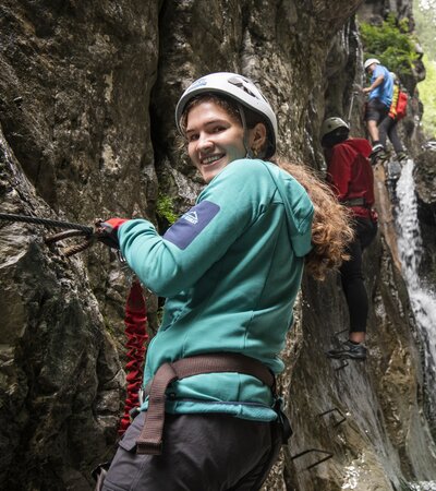 Gönn Dir ein außergewöhnliches Klettererlebnis im Montafon: Ausgewählte Klettersteige führen nahe an imposanten Wasserfällen vorbei – für erfrischende Momente ist also gesorgt. Auf dem Klettersteig St. Anton kletterst Du neben dem Wasserfall, lauschst dabei dem Rauschen des Wassers und spürst die nasskühle Brise. Für Anfänger und Familien ist der Klettersteig Röbischlucht mit seinen wilden Wassern und steilen, schattenspendenden Felswänden ein Muss.