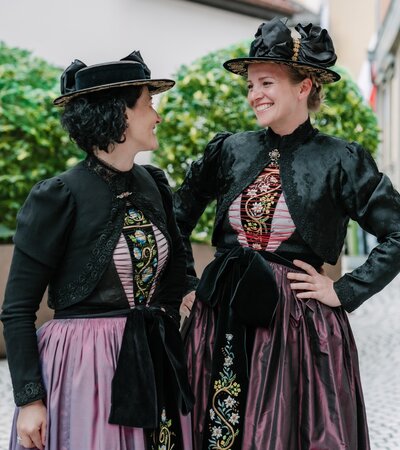 Die Montafoner Festtagstracht besticht durch feinen, schwarzen Wollstoff und aufwendige Stickereien.