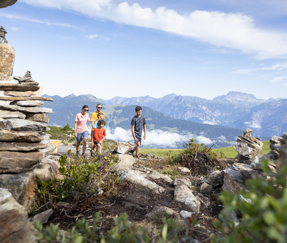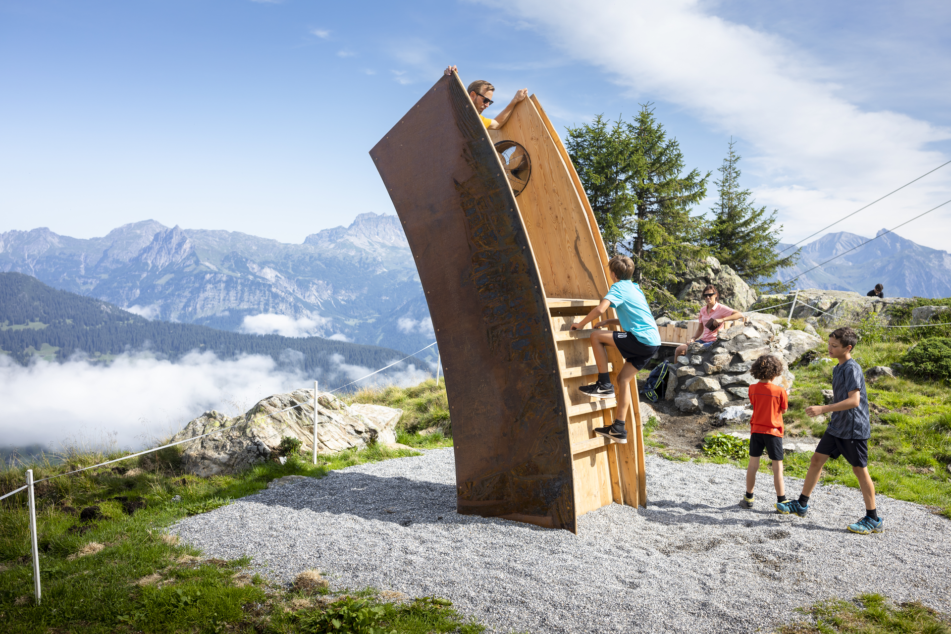 Danach folgst Du dem Wegverlauf links bergauf, vorbei an der Alpe Vorderkapell und schon befindest Du Dich auf dem Naturkräftepfad, welcher mit 8 verschiedenen interkativen Station rund um das Thema "die Elemente in den Bergen". Von der vorletzten Station "Schwebender Stein" sind es nur noch wenige Minuten bis zum Aussichtspunkt Surblies - diese zusätzlichen Höhenmeter sind auf jeden Fall lohnendswert.