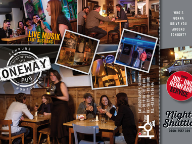70er, 80er und 90er Sound, hochwertige Whisky und Rum Auswahl, Guinness vom Fass, verschiedene, heimische und internationale Biersorten, gratis WLAN, Snack-Karte