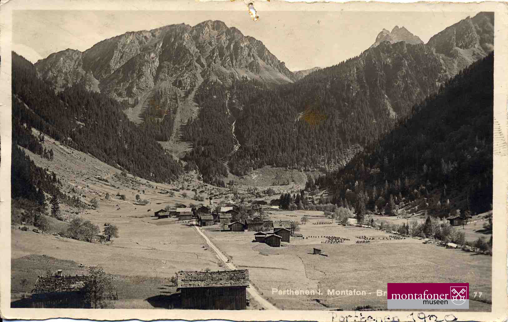Partenen, das ist «das letzte» und «das armseligste» Dörfchen im Montafon. Zumindest dem Schriftsteller Ludwig Steub (1812–1888) nach, der 1846 sogar konstatiert, dass in Partenen eigentlich alles zu Ende ist: «Das Sträßchen, das bis hierher geleitet, versiegt in den Wiesen, das Thal ist hier zu Ende, zu Ende auch die milde Anmut, die Gerstenfelder und die Obstbäume...» Allerdings ist Partenen keine wirkliche Sackgasse, sondern ein eigentlicher Verkehrsknotenpunkt. Das Dorf liegt am Fuß des Zeinisjochs, des Übergangs ins tirolerische Paznaun. Ebenfalls ins Paznaun geht´s von hier in einer großen Südschlaufe durch das Großvermunt, über die Bielerhöhe und das Kleinvermunt, ab der Bielerhöhe geht´s zudem südwärts über historische Bergpfade und Pässe ins schweizerische Unterengadin, westwärts sogar ins Prättigau. Seit Jahrhunderten werden diese Wege von den Säumern, den Warentransporteuren des Mittelalters und der frühen Neuzeit, genutzt. Das Dorf am Fuß der Pässe bleibt im 19. Jahrhundert aber tatsächlich noch unbehelligt von Modernisierungen. Noch um 1925 gibt´s in Partenen weder Strom, Telefon noch eine richtige Wasserversorgung. Aber dann erscheinen gleich Hunderte Arbeiter, sie verlegen eine Materialbahn durchs Montafon bis nach Partenen, bauen ab hier einen Schrägaufzug nach Trominier hinauf, bauen von dort eine Höhenbahn ins Vermunt und errichten auf diesem Alpgebiet schließlich eine 50 Meter hohe Talsperre, den Stausee Vermunt, Kernstück des bei seiner Fertigstellung 1931 größten Wasserkraftwerk Österreichs. Ab 1954 führt das Talsträßchen, das 1910 immerhin schon etwas ausgebaut worden ist, von Partenen auch weiter – als elegante Silvretta-Hochalpenstraße über die Bielerhöhe und am Silvretta-Stausee vorbei ins Paznaun. Trotz der neuen Infrastrukturen der Stromwirtschaft, zu denen in der Silvretta-Region nebst dem Vermuntwerk auch das Rifawerk, das Obere Vermuntwerk sowie die den Stausee Kops nutzenden Werke zählen, hat sich in Partenen das alte Siedlungsbild relativ gut erhalten. Der Dorfkern, der 1840 gerade mal 22 Häuser mit 110 Bewohnern aufwies, ist heute noch umgeben von sogenannten Rotten, von Streusiedlungen mit Namen wie Gufelgut, Rütler oder Bofa. Partenen zählt mittlerweilen aber doch rund 460 Einwohner.
