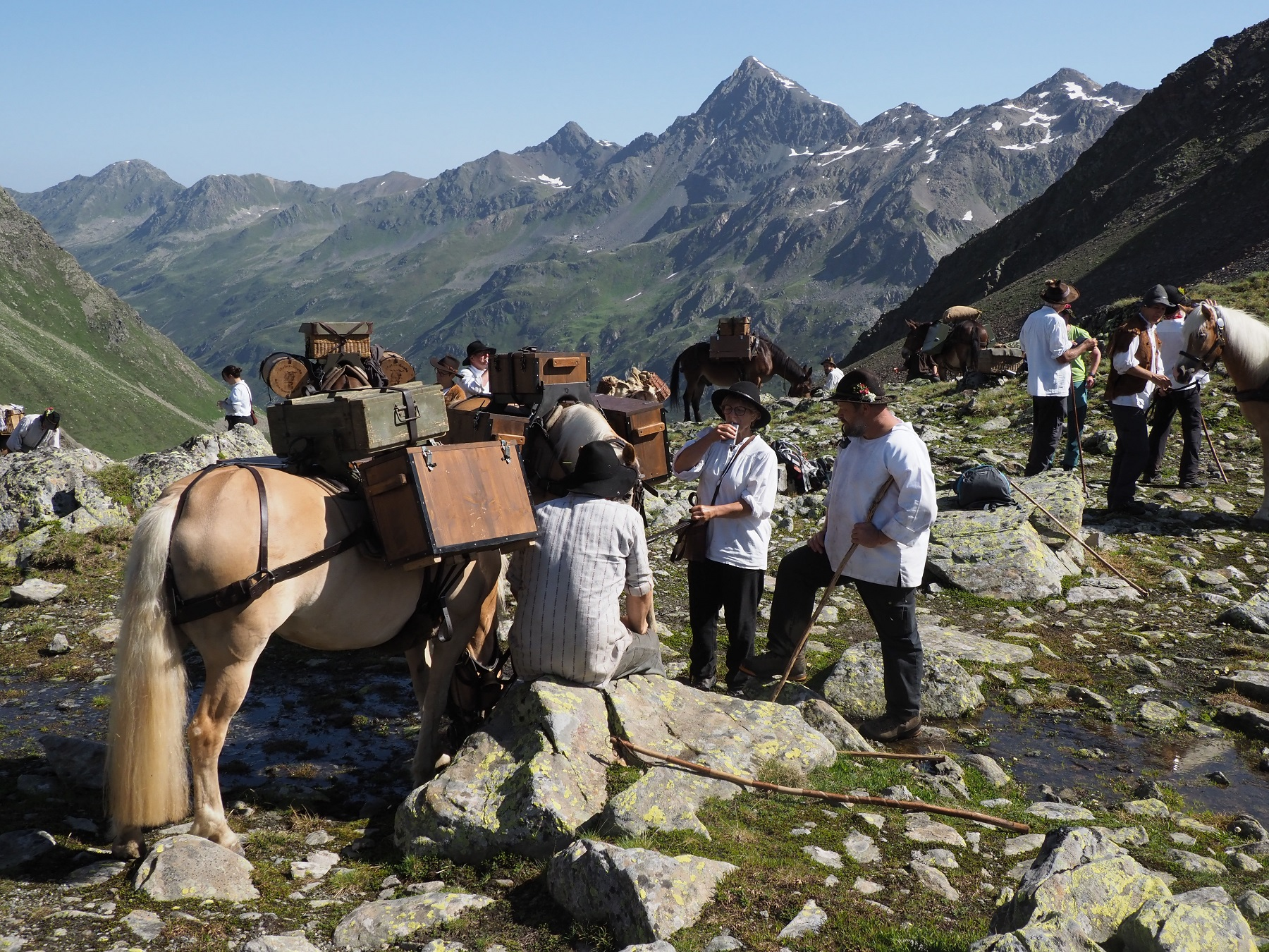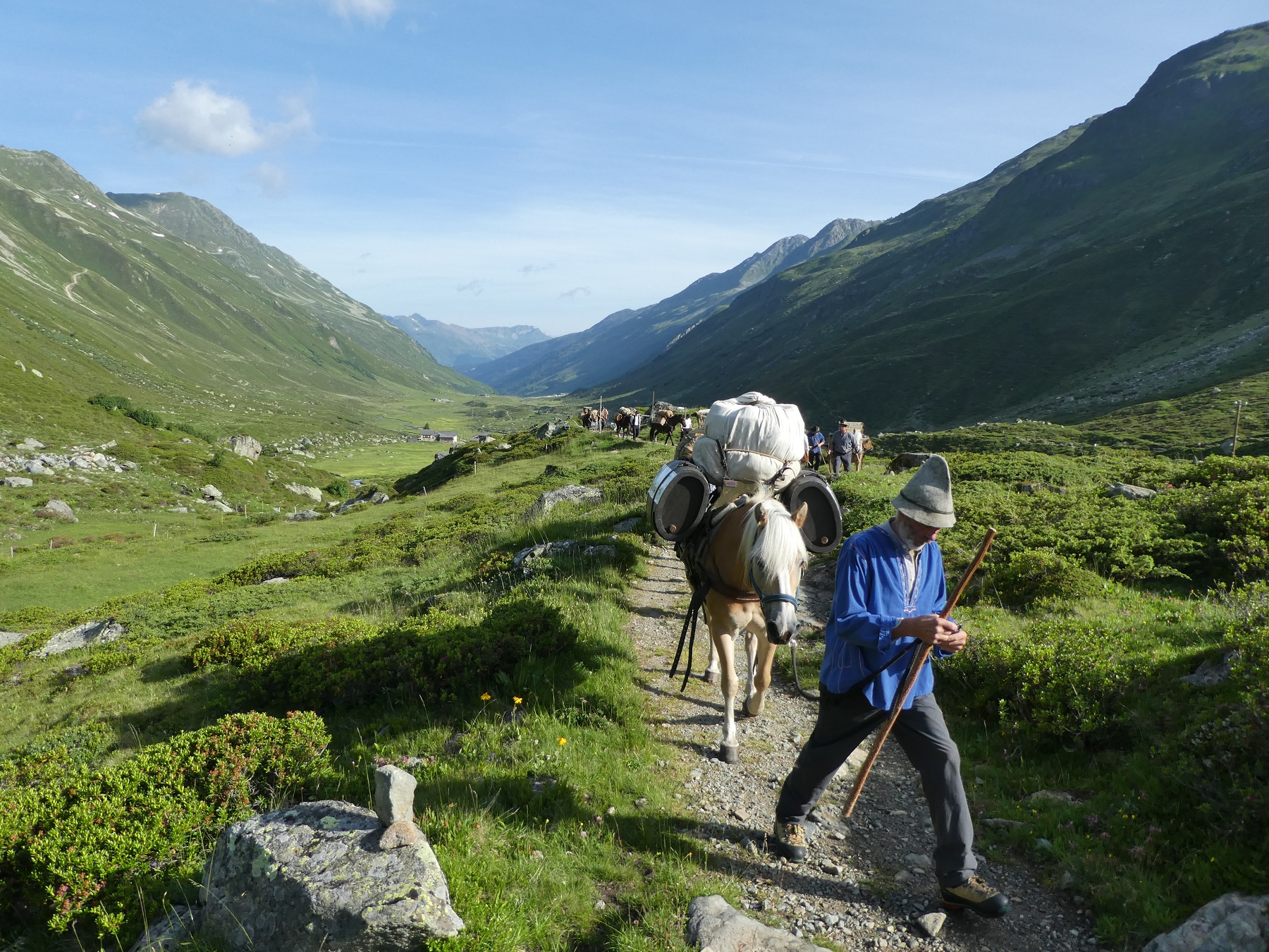 Bevor sich die Säumer der Via Valtellina Wanderung auf die Spuren der traditionellen Handelsleute begeben, um die traditionelle alpine Kultur in ihrer ganzen Vielfalt zu erleben, heißen wir die Gruppe um Daniel Flühler herzlich in Gargellen willkommen. Triff die Säumer und ihre Gäste am 18. Juli, bevor sich der Saumzug ab Gargellen, übers Schlappinerjoch ins Prättigau, danach über den 2600 m hohen Scalettapass, durchs Engadin weiter über den Berninapass ins Puschlav bis nach Tirano in Italien, begibt.
