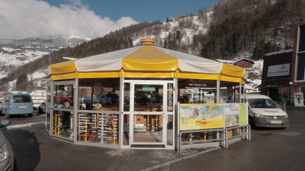 Die Schirmbar direkt an der Talstation der Zamang Bahn