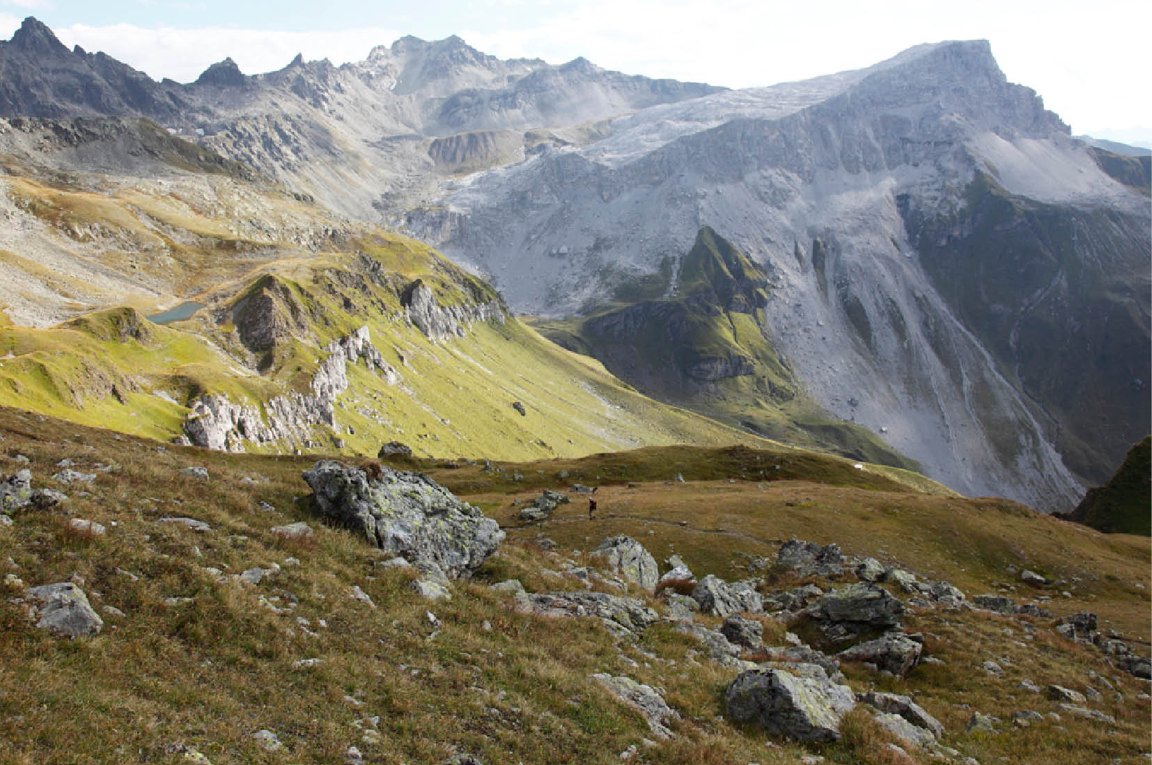 Start der Tour ist beim Bergrestaurant Schafberg Hüsli in Gargellen und führt über den breiten Weg bergwärts Richtung Bergstation der Kristallbahn, folge einfach der Beschilderung in Richtung St. Antönier Joch. Oben angekommen geht es um den Berg herum, orientiere Dich am Wegweiser zum St. Antönier Joch. Zunächst geht es etwas abwärts, bevor es dann in den schmalen Pfad zum St. Antönier Joch abzweigt. Der Wegweiser gibt an, dass Du das Joch in 45 Minuten erreichst. Über Wiesen wanderst Du dahin und erreichst dann das St. Antönier Joch. Die Grenze zwischen Österreich und der Schweiz. Ein traumhafter Ausblick liegt dir zu Füßen. Weiter führt der Weg nach links. Über den Grat (Seil vorhanden, Trittsicherheit und Schwindelfreiheit erforderlich) wanderst Du zum höchsten Punkt dieser Tour. Dem Weg folgend auf der Schweizer Seite wanderst Du weiter. Dein nächster Halt ist der Gafiersee. Idyllisch in Wiesen eingebettet bietet sich eine Rast an, um auch die Ausblicke nach dem Walserdorf St. Antönien, auf die Sulzfluh, die Drei Türme und die imposante Rätschenfluh genießen zu können. Gestärkt und erholt geht es nach dem Gafiersee über Blockfelder in einem etwas knackigen Anstieg noch einmal bergwärts. Auf dem Rücken des Gafierjochs finden sich zahlreiche Aussichtspunkte, die diese Wanderung zu einem unvergesslichen Erlebnis machen. Beim Gafierjoch überquerst Du wieder die Landesgrenze und wanderst auf Montafonerischem Boden weiter. Beim Gafierjoch biegst Du links ab und steigst über den Speichersee zum Ausgangspunkt, dem Bergrestaurant Schafberg Hüsli, ab.