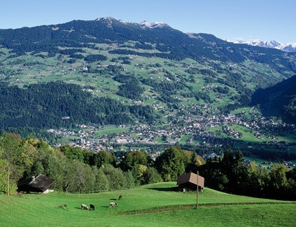 Blick auf die Wallfahrtskirche Tschagguns. Links davon den Pfarrhof und darüber wieder die Tschagguns Mittagspitze. Tschagguns war urkundlich schon 1431 eine selbständige Pfarrgemeinde. Aber bereits 1339 wurde hier eine Kirche erwähnt.