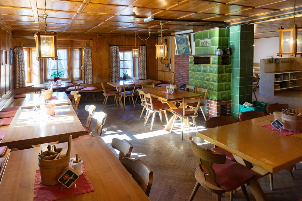 Der urige Winterraum ist im Winter offen und hält alles für die Wintersaison Nötige bereit: Ofen, Schlafplatz mit 15 Decken, WC sowie einen kleinen Notfallvorrat für Schutzsuchende. Für die Bezahlung ist eine Kassa aufgestellt.