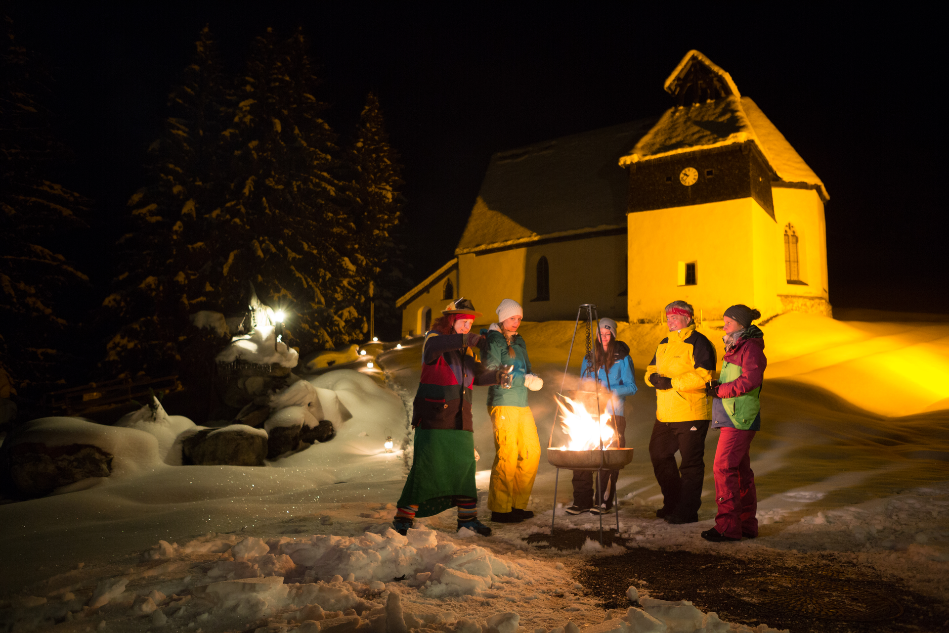 Nach der vereinten nächtlichen Bergfahrt mit der Montafoner Kristbergbahn geht es ganz gemütlich zur Bergknappenkappelle St. Agatha, wo es die ersten Sagen und Geschichten gibt. Als wärmenden Zwischengang gibt es ein heißes alkoholisches bzw. alkoholfreies Getränk aus dem Kupferkessel beim Bergknappenbrunnen. Anschließend geht es in die warme Stube vom Panoramagasthof Kristberg, wo Geschichte in Geschichten und eine feine 3-gängige kulinarische Reise ins frühzeitliche Montafon sich abwechseln. Der krönende Abschluss ist dann die nächtliche Mondscheinfahrt in Silbertal, wo die sagenhaften Stunden enden und viele Eindrücke den Heimweg begleiten.
