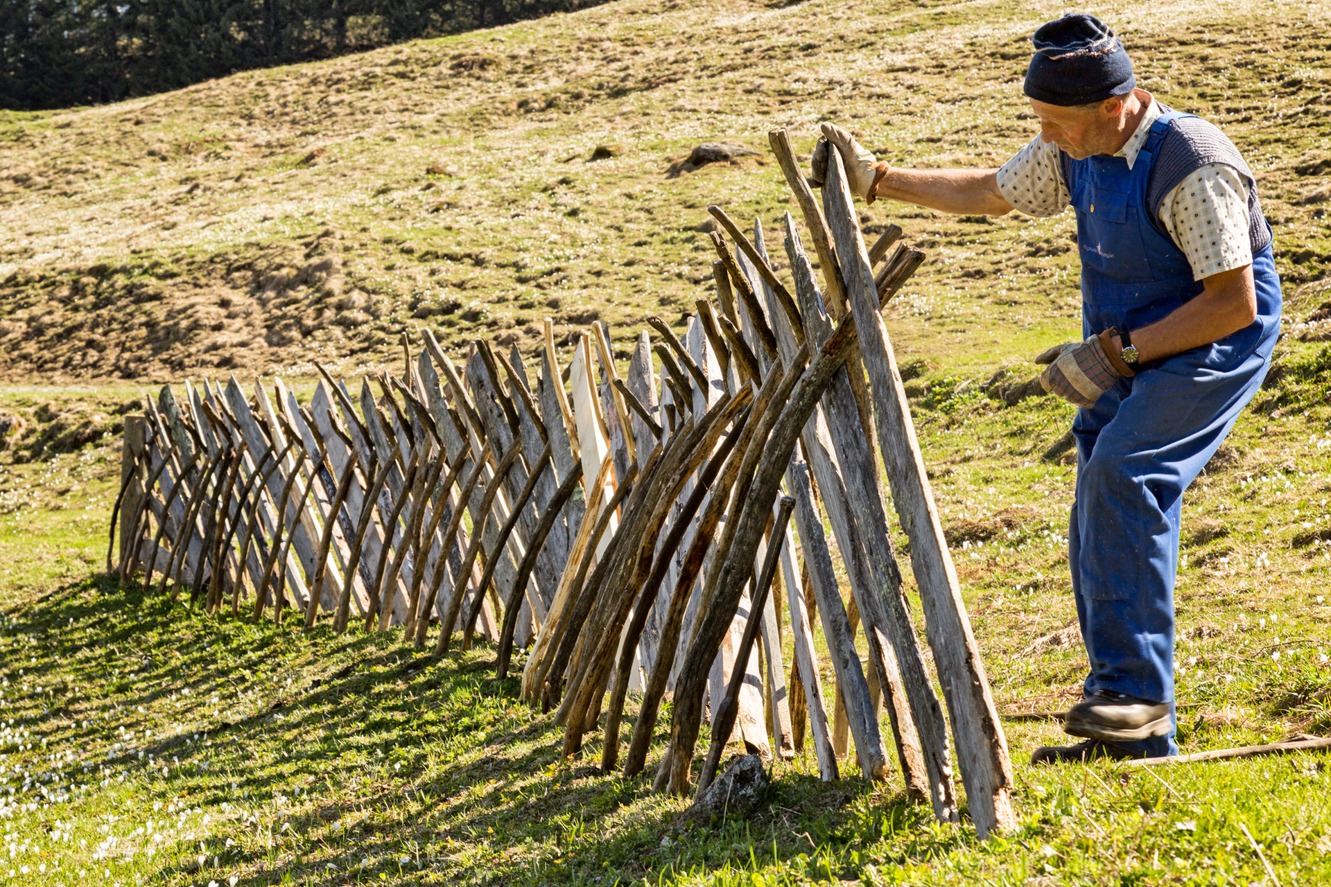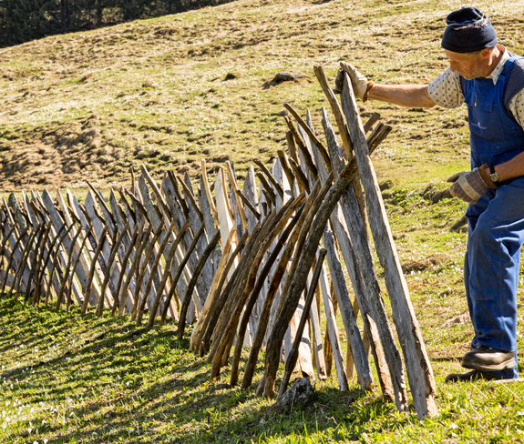 Heimische Facharbeiter zeigen wie Schindeln, Scheien, Zaunpfähle und Tüchel (Wasserleitungen) in althergebrachter Handarbeit gefertigt werden, nur bei trockener Witterung.