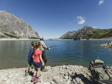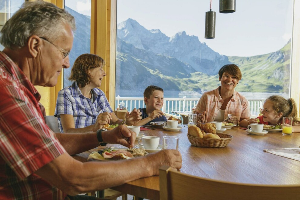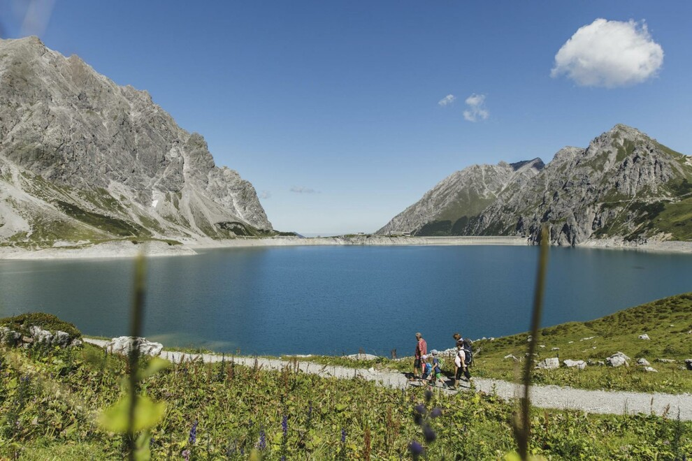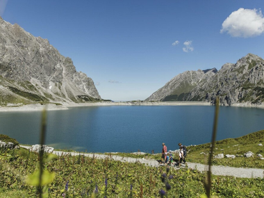Enjoy the surrounding mountains on the sunny lakeside terrace of the turquoise-blue ‘jewel’ of the Rätikon